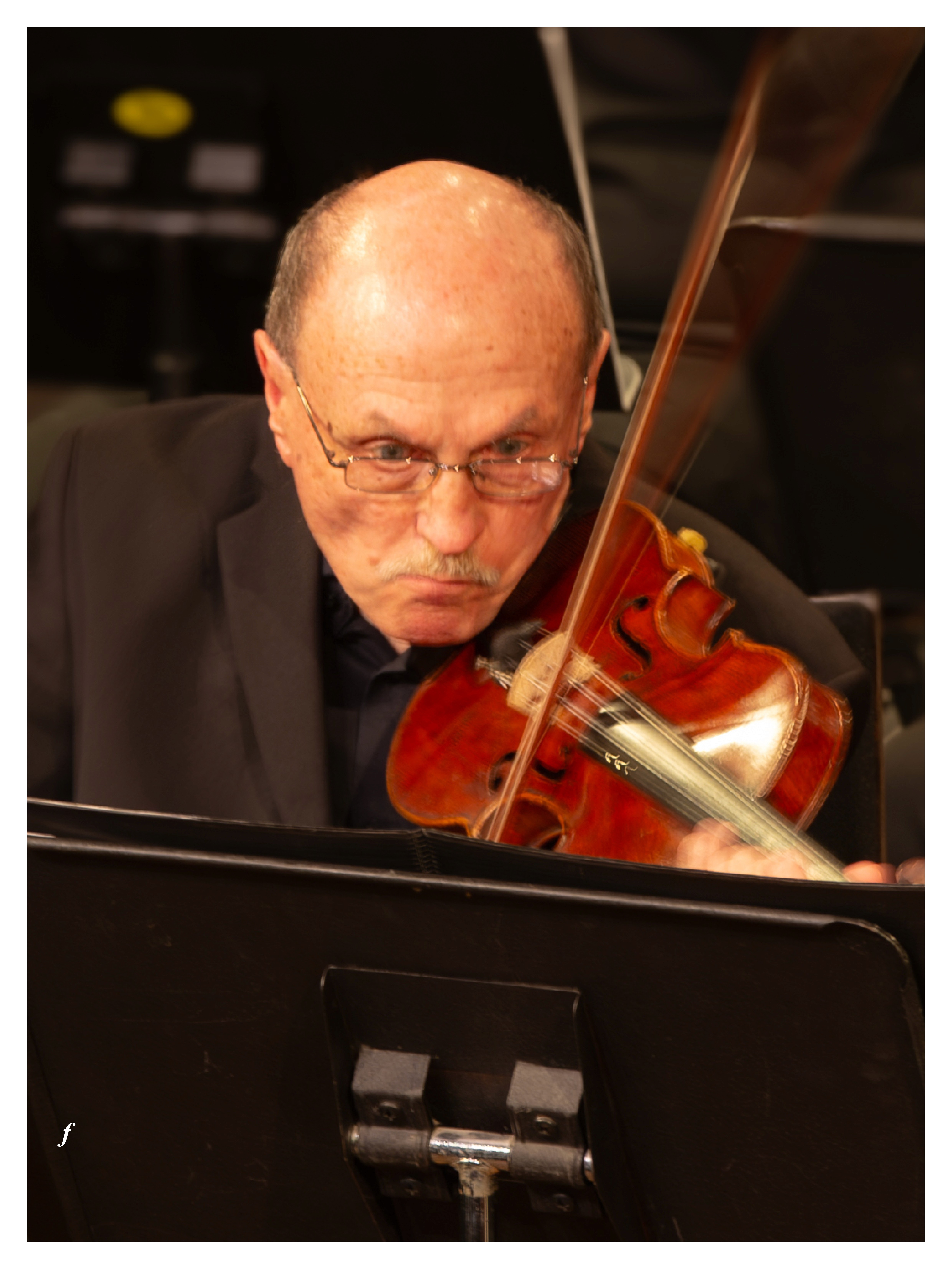 Um diese Dynamik zusätzlich zu betonen, arbeite ich mit Langzeitbelichtungen. Wenn die schnellen Bewegungen von Händen und Streichbögen auf den Fotos verschwimmen, wird die Kraft und damit die Lautstärke – des Spiels visuell verdeutlicht. Der Titel cresc. steht dabei für „Crescendo”, den musikalischen Fachbegriff für das Lauterwerden, hier in der typischen Abkürzung in den Partituren.